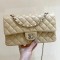 샤넬 클래식 미디움 램스킨 플랩백 베이지 금장 A01112
